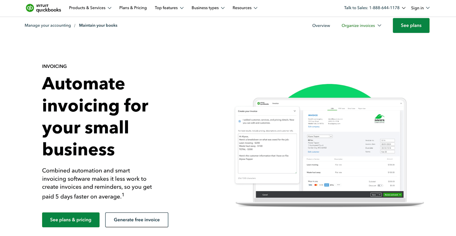 QuickBooks is a cloud accounting and invoice automation software specifically designed for small businesses. It helps you create and send invoices, manage expenses, and track payments in a centralized system that eliminates the need for manual data entry.